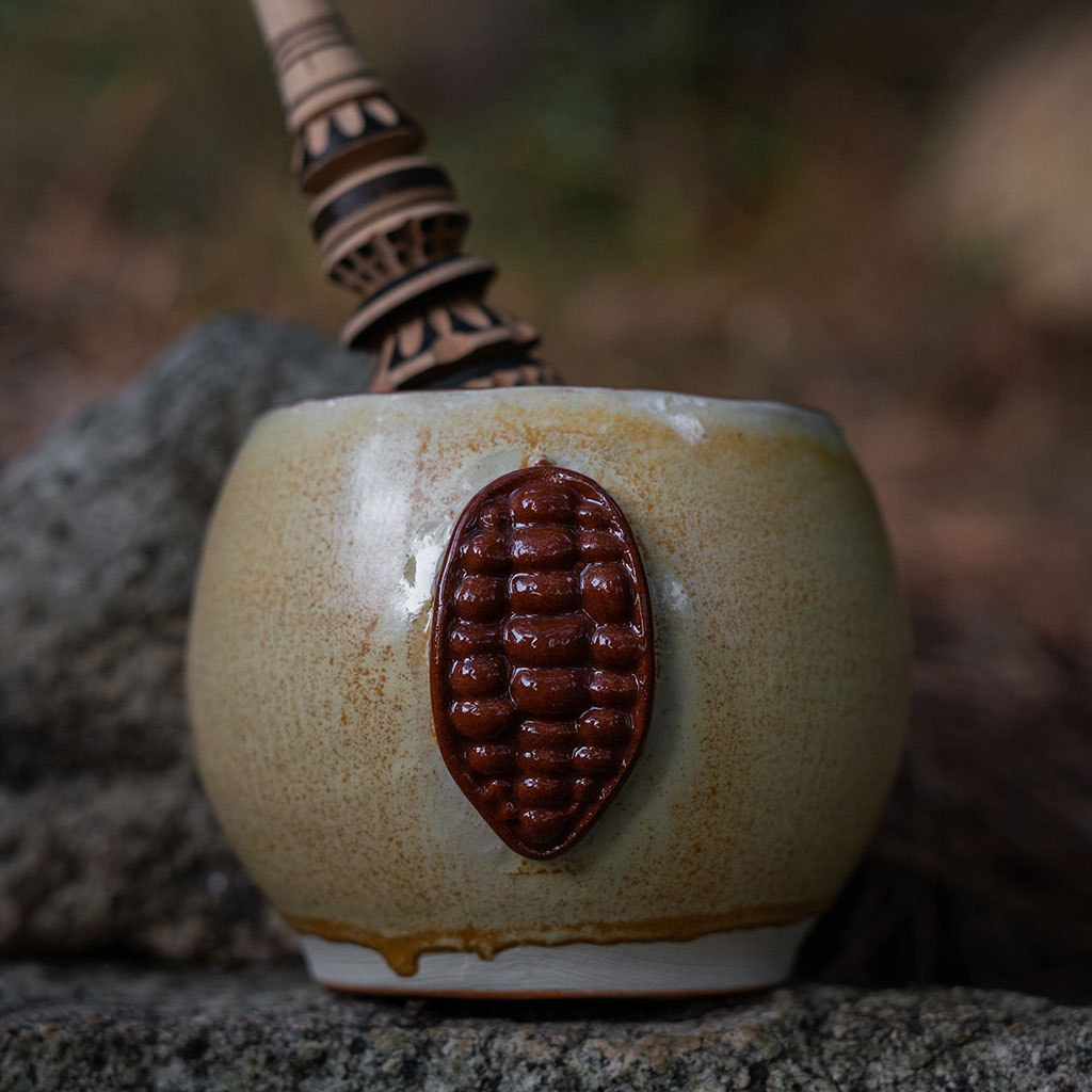 The molinillo is the utensil for the next level experience in preparing the sacred cacao drink. It helps dissolve the cacao paste in the hot water and then creates a wonderful foam.