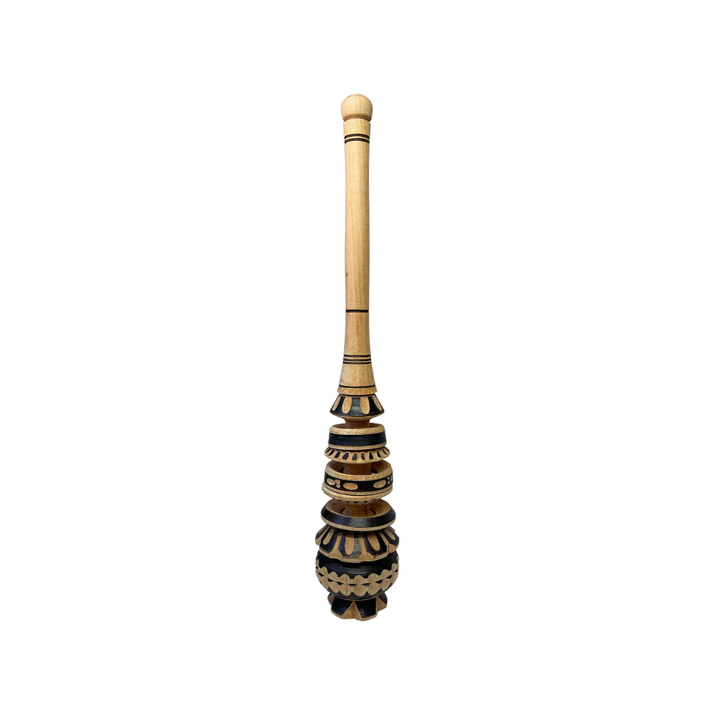 The molinillo is the utensil for the next level experience in preparing the sacred cacao drink. It helps dissolve the cacao paste in the hot water and then creates a wonderful foam.
